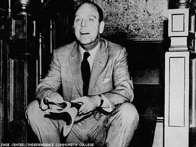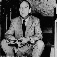 - William Inge sitting on the stairs of the family home in Independence, Kansas.